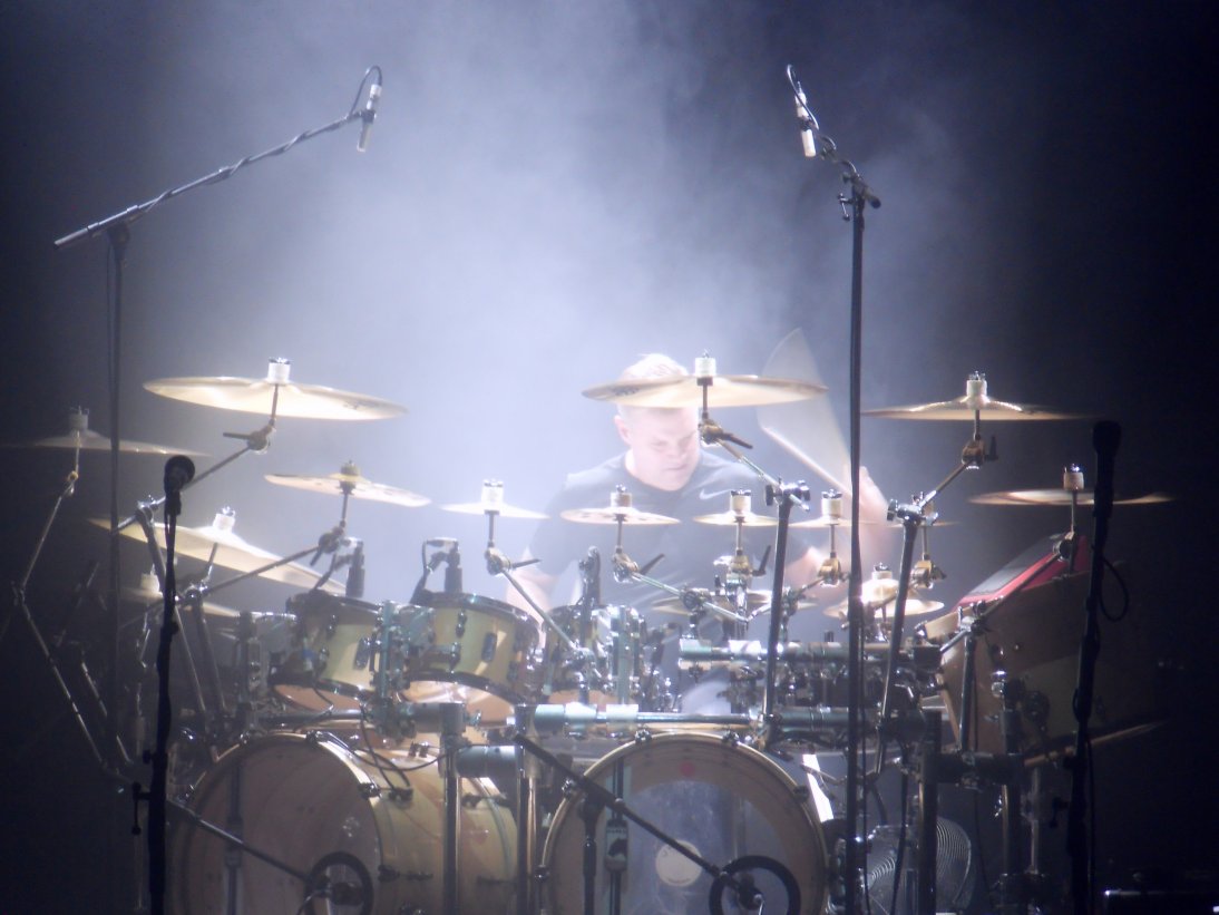 The first half was concluded by a truly rampaging reading of Clocks in which the new boy Craig Blundell threatened to lift the roof off the hall with his percussive pyrotechnics!