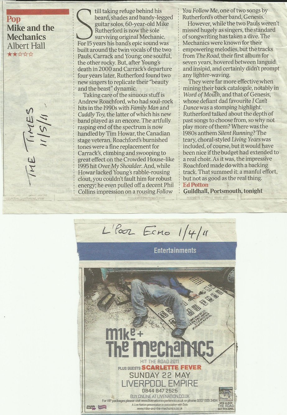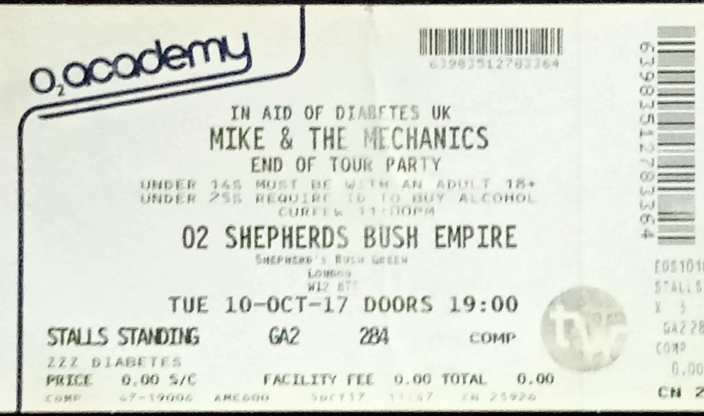 Set List (2011): The Road/ABeggar On A Beach Of Gold/Get Up/Try To Save Me/Another Cup Of Coffee/Nobody Knows/I Don't Do Love/If I Were You/Only To Be With You/ Follow You Follow Me/I Can't Dance/Living Years/Over My Shoulder/All I Need Is A Miracle/Cuddly Toy/Word Of Mouth