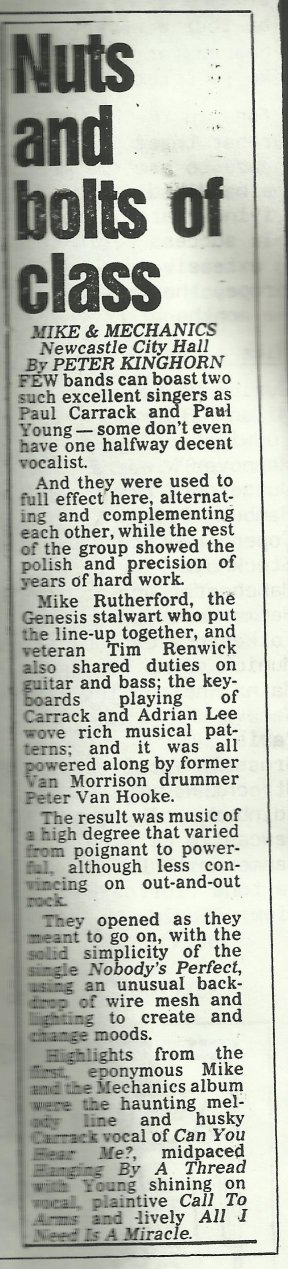 Set List: The Best Is Yet To Come/ Another Cup Of Coffee/A Beggar On A Beach Of Gold/One Way/Try To Save Me/Let Me Fly/ Land Of Confusion/Cuddly Toy/Out Of The Blue/Follow You Follow Me/Don't Know What Came Over Me/What Would You Do/ Everybody Gets A Second Chance/ Silent Running/Get Up/Living Years/I Can't Dance/All I Need Is A Miracle/Over My Shoulder/Word Of Mouth