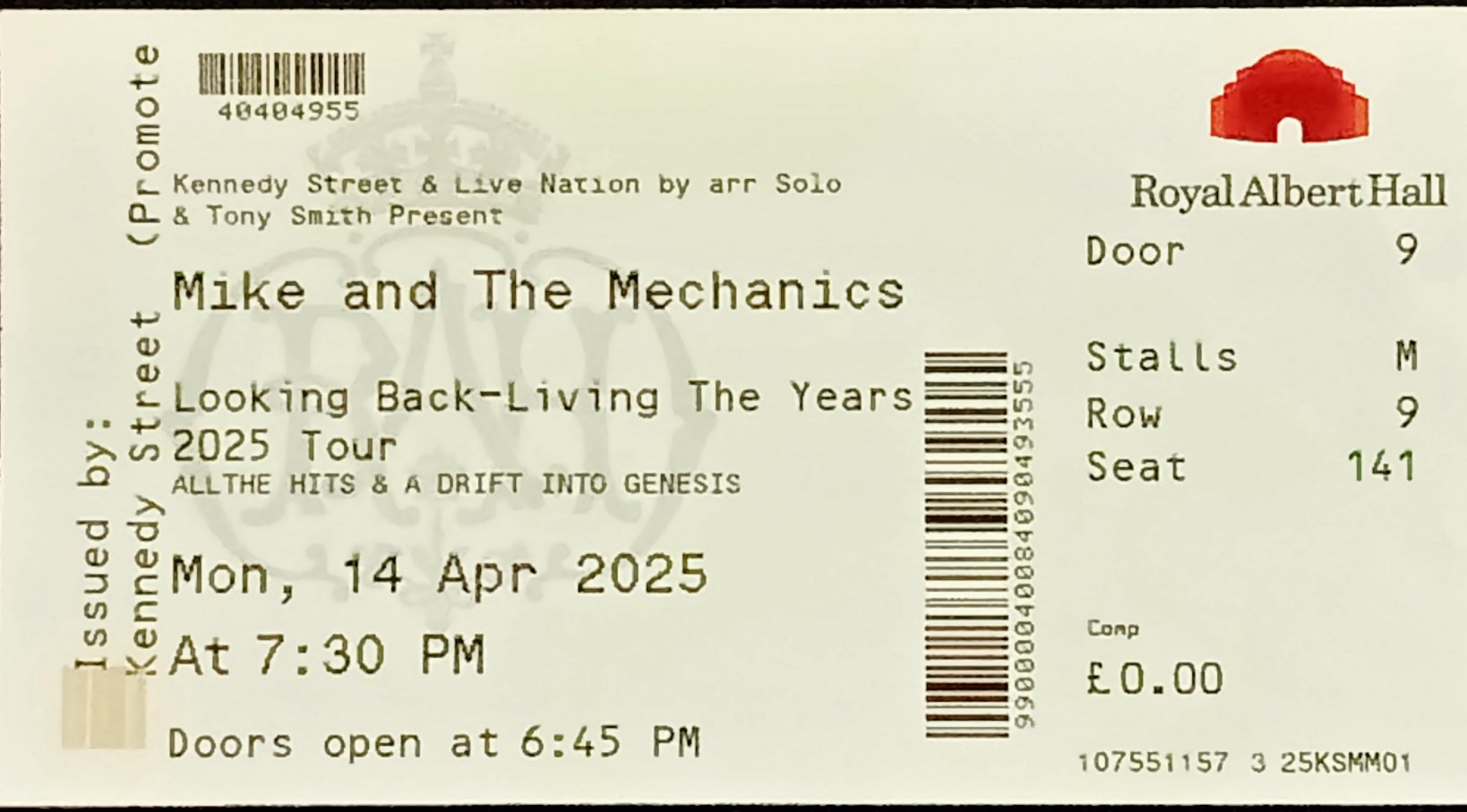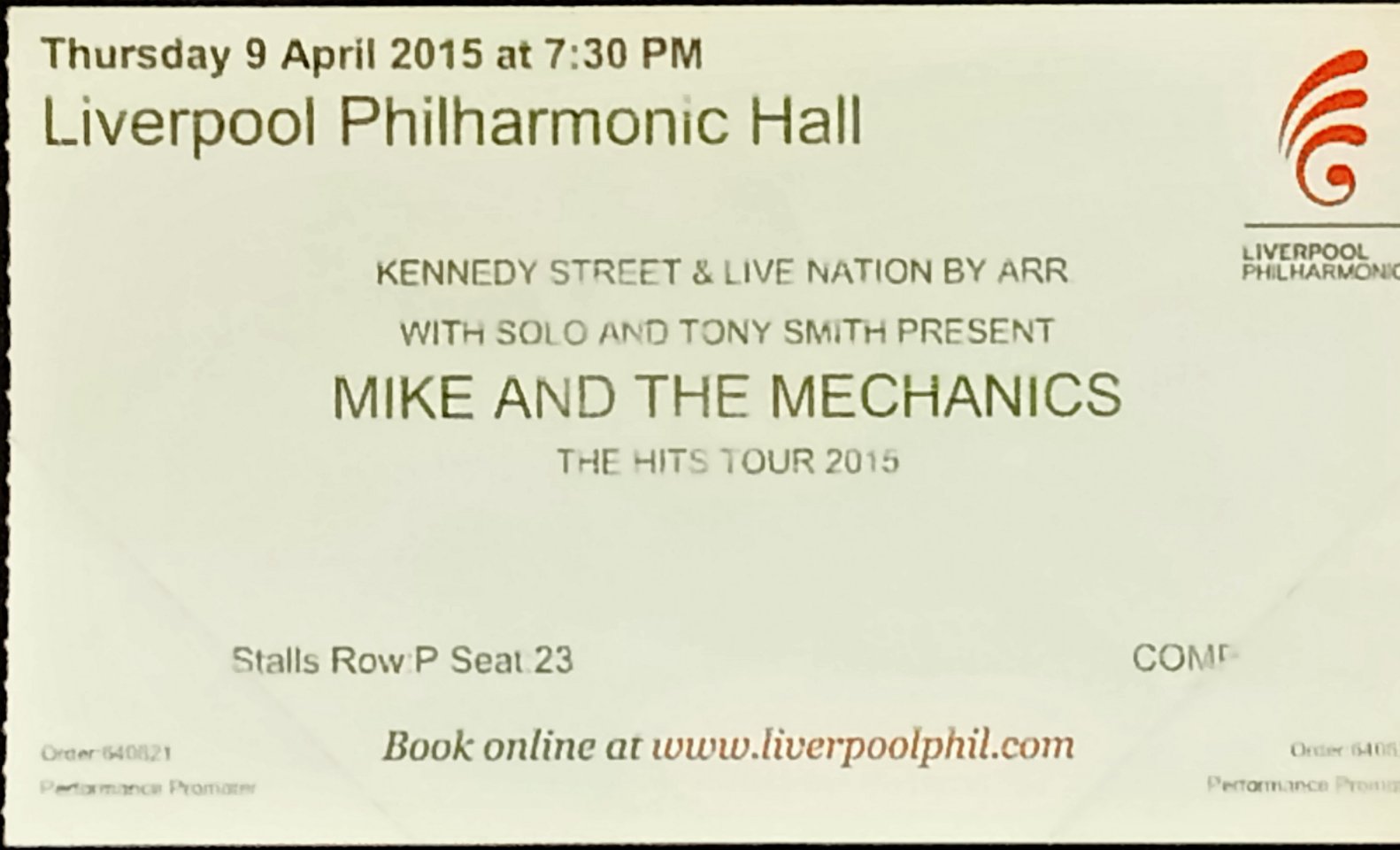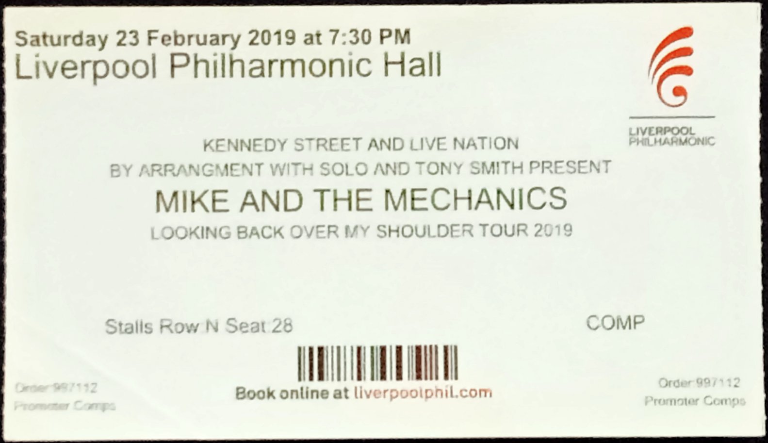 Set List: (Rhein Energie Stadion Cologne) Falling/Now That You've Gone/Silent Running/If I Were You/One Left Standing/ Living Years/Over My Shoulder/Word Of Mouth.